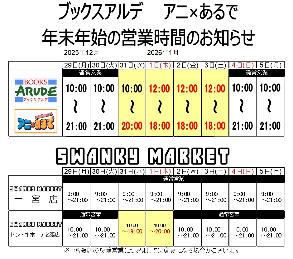 ブックスアルデ・スワンキーマーケット全店で取扱い(タイトルによって取扱いの無い物がございます)